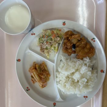 鶏の塩唐揚げ ツナサラダ マカロニソテー ご飯 牛乳