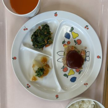 ミートローフ ほうれん草とジャコの和え物 ふろ吹き大根 ご飯 野菜ジュース
